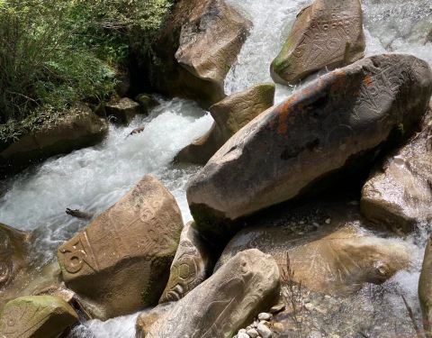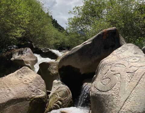是真正的唐蕃古道,也是茶马古道,山沟的山上和溪流中的岩壁和石头,基本都刻上了六字真言和经文,山...