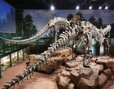 永川博物馆背靠着茶山竹海,西侧神女湖公园,东侧为昌州古城。2009年开工建设,2018年建成开馆。博物馆主体建筑为仿古式框架结构,建筑面积约9000㎡,包含博物馆、图书馆、棋院、地下停车库等设施。其中博物馆建筑面积7423.34 平方米,展馆共分三层,涵盖了自然、历史和人文领域,永川龙化石是镇馆之宝。