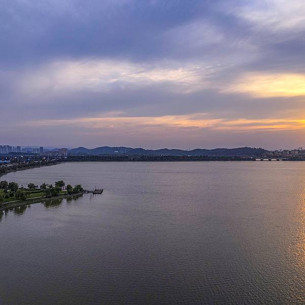 湖延八里,云横九派。 傍晚,去九江八里湖公园看个夕阳。19平方公里水域面积,23公里长的环湖岸线,10万平方的阳光沙滩,占地100万平方米的八里湖,曾经是市区之外的郊野,如今则是宜居宜游的城中新贵,它也是九江人“滨湖亲水”的首善之地。放眼八里湖,一边是现代化新型生态城市的繁华绚丽,一边留有江南山水文化的魅力和底蕴。拥江抱湖,揽山入城,九江之美在八里湖流光溢彩,璀璨生辉。