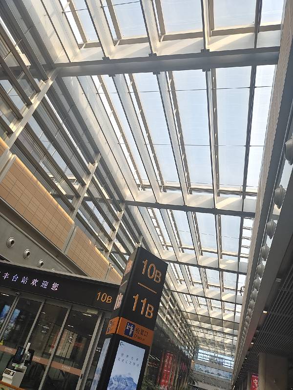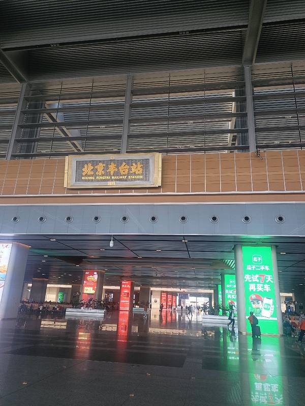 北京丰台站,原名丰台站,位于中国北京市丰台区境内,是中国铁路北京局集团有限公司管辖的铁路特等站,也是中国国内首个普速、高速双层车场站型布置的大型现代化铁路车站。 现办理京沪铁路、京广铁路、丰沙铁路、京原铁路、丰广联络线、京广高速铁路及京港高速铁路等线路的客运业务。一、进站 北京丰台站有东、南、西、北四个进站口,目前仅开放东2F、南1F进站口。丰台站现有32个检票口,商务座候车区位于候车厅东北角。客流高峰期开放(平时暂不开放)地下一层普速列车快速进站厅,乘坐普速列车,开车前30分钟还未进站的旅客可以选择从快速进站厅抵达站台。1、乘坐出租车、网约车或驾车到达二层东侧落客平台,东2F进站口进站最为方便,安检后可直接进入候车大厅。 驾车到达丰台站,也可将车辆停放在北京丰台站-西1、2地下停车场,落客后通过地下1层引导标识进站乘车;或者将车辆停放在北京丰台站南广场P1、P2地面停车场,步行至南1F进站口安检进站。2、乘坐地铁前往丰台站,可以搭乘地铁10、16号线到达丰台站。按标识出站后乘坐扶梯,直达站内一层进站厅,在进站口安检后即可进站候车。3、乘坐公交车到达丰台站,下车后直行即可到达南1F进站口,安检进站后即可进入候车厅。二、出站丰台站为普速、高速双层车场站,到达后出站口不一致。乘坐高铁列车到达北京丰台站的旅客目前全部经由出站口5出站。乘坐普速列车到达北京丰台站的旅客目前全部经由出站口4出站。1、乘坐出租车,可以至地下1层出租车调度站。2、乘坐网约车,出站后到南广场地面P1、P2停车场这里设有网约车专用停车区,约车地点选择“北京丰台站-P2停车场”。3、乘坐地铁,到达地下1层按照引导标识换乘地铁,目前可换乘地铁10号线及16号线。4、乘坐公交车,不用出站到达地面层,可在出站口夹层乘坐公交车。三、换乘丰台站为普速、高速双层车场站,候车厅位于2层,高铁车次位于3层,普速列车位于1层。高铁列车换乘需向下进入2层候车厅,普速列车换乘需向上进入2层候车厅。站台设有换乘标识,根据标识换乘即可。 四、其它站点换乘 1.北京丰台站——北京站-地铁乘坐地铁全程约46分钟,乘坐地铁10号线外环至角门西站,换乘地铁4号线大兴线至宣武门站,换乘地铁2号线外环至北京站下车。-出租车或网约车全程22公里,约45分钟。 2.北京丰台站——北京西站-地铁乘坐地铁全程约22分钟,乘坐地铁10号线内环至六里桥站,换乘地铁9号线至北京西站下车。-出租车或网约全程约10公里,25分钟。 3.北京丰台站——北京南站-地铁乘坐地铁全程约24分钟,乘坐地铁10号线外环至角门西站,换乘地铁4号线大兴线至北京南站下车。-出租车或网约车全程约10公里,28分钟 4.北京丰台站——北京北站-地铁乘坐地铁全程约48分钟,乘坐地铁10号线外环至角门西站,换乘地铁4号线大兴线至西直门站下车。-出租车或网约车全程约21公里,40分钟 5.北京丰台站——北京朝阳站-地铁乘坐地铁全程约58分钟,乘坐地铁10号线外环至团结湖站,换乘地铁3号线到朝阳站下车。-出租车或网约车全程约32公里,60分钟。 6.北京丰台站——北京清河站-地铁乘坐地铁全程约63分钟,乘坐地铁10号线内环至知春路站,换乘13号线(东直门方向)至清河站下车。-出租车或网约车全程约31公里,55分钟。 7.北京丰台站——北京首都国际机场-地铁乘坐地铁全程约1小时40分钟,乘坐地铁10号线外环至三元桥站,换乘首都机场线至北京首都国际机场。-乘坐出租车或网约车全程约52公里,1小时22分钟。