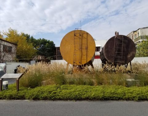 船厂大型储油罐保留在杨树浦路640号门口,作为标志性景观提示人们这里曾经是百年老船厂