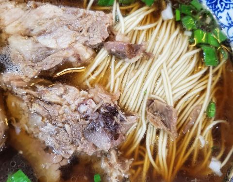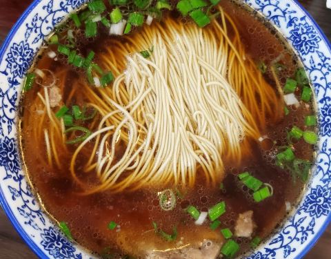 最大众的枫镇大肉面,大肉份量不少,厚厚的一块。吃到一半突然发现飘着一些白色小粒,正疑惑是什么东西,又感觉面汤有点淡淡酒酿的味道,于是百度了一下,原来这款枫镇面就是以加入酒酿为特色。整体依然中规中矩吧。