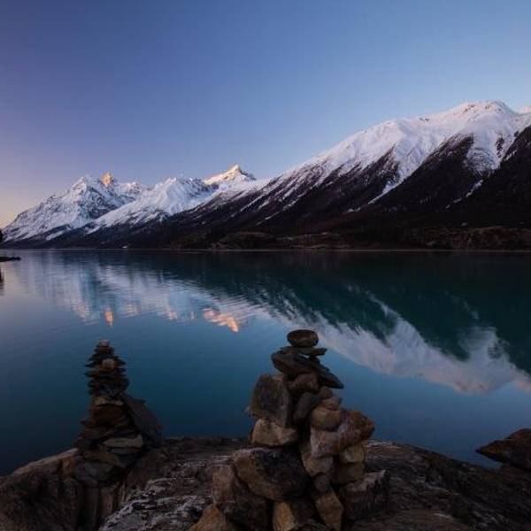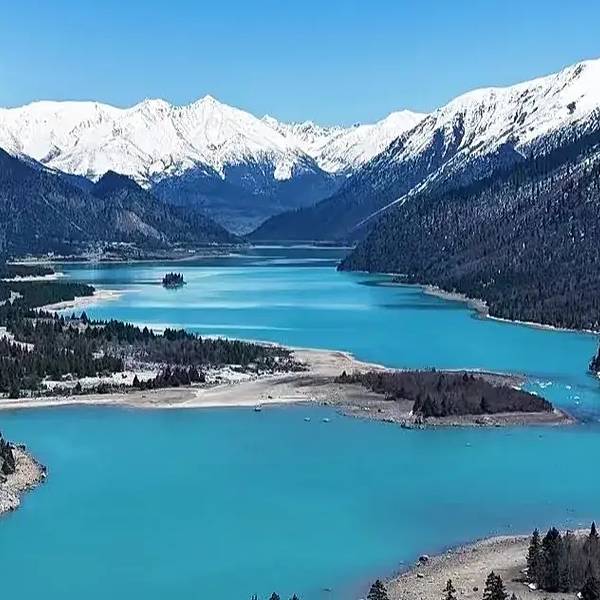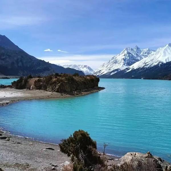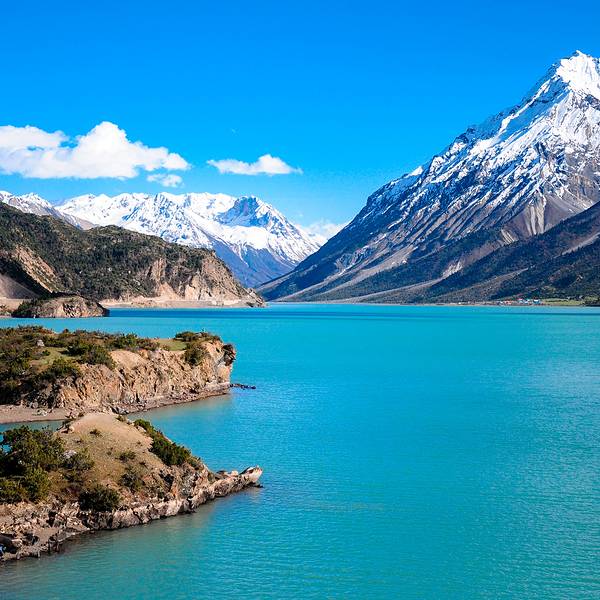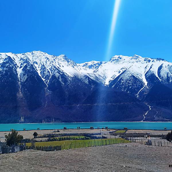 然乌湖位于318国道线八宿境内,是雅鲁藏布江支流帕隆藏布江主要源头,长约25公里。整个湖呈狭长河谷状,湖宽12公里,由3个上下相连的湖泊组成,海拔3800多米,风光旖旎。然乌湖北面是有名的来古冰川,冰川延伸到湖边。每当冰雪融化时,雪水便注入湖中,让这里经常保有丰富的水源。然乌湖湖边是一大片碧草如茵的草甸,上面长满了鲜艳的狼毒花,和碧蓝的湖水、白雪皑皑的山峰,形成美丽的风景。随季节的不同,湖水也呈现出或碧蓝或青绿等数种颜色,许多岩石和小岛点缀其间,湖面上春夏树影婆娑、秋冬薄雾弥漫,四季美景如画。