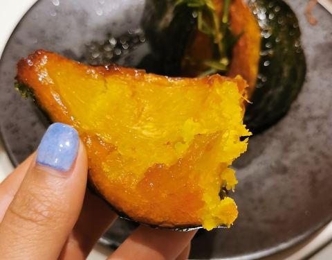慈悲在心,多吃素食。在我心里,庆春食堂很像一个“无国界”餐厅,从传统中餐、到西式料理、到下午茶甜点,应有尽有。 烤南瓜 太!好!吃!了!又香又甜!我爱了。而且摆盘非常讲究,对于我这种强迫症来说,特别舒坦。 香草素鸡块 金黄的色泽十分诱人,第一口吃下去真的以为是在吃鸡块呢! 菌菇暖沙拉 大爱的一道菜,颜值极高。一半菌菇,一半沙拉,平分秋色,很喜欢里面的核桃仁。 印度咖喱薄饼 饼又脆又薄,和咖喱搭配棒极啦,口感很美妙。