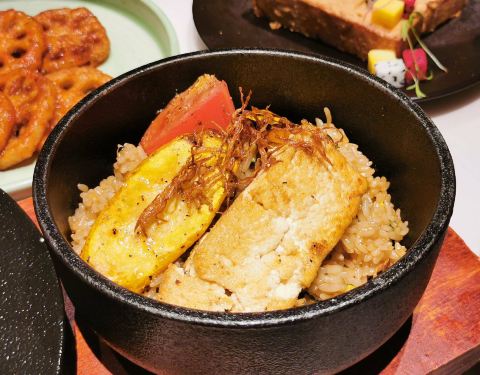 偏和风装修的素食餐厅,黑松露炒饭粒粒分明