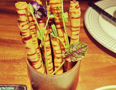 - |香草素鸡块^类似KFC上校鸡块的口感,素鸡金黄酥脆,口感柔嫩,若有一味独属酱料更棒