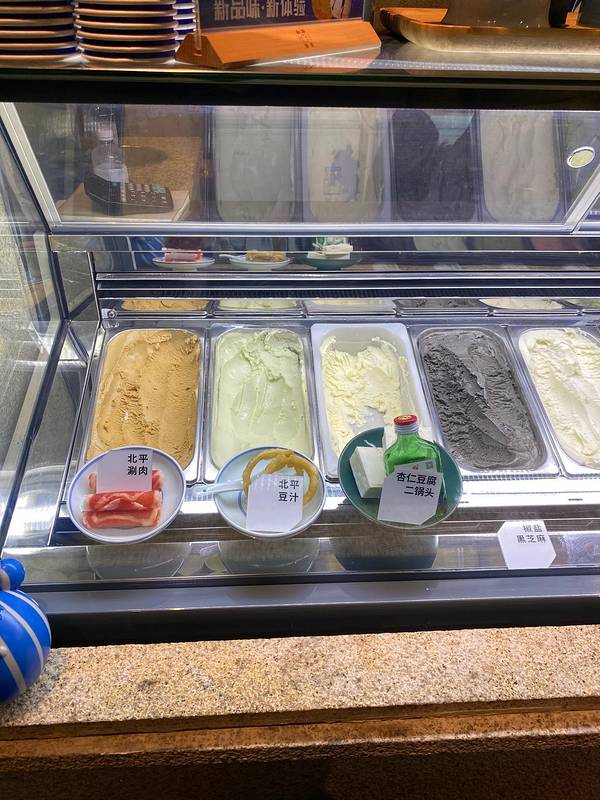 📌「北平冰匠冰淇淋」特别特别推荐北平冰匠!前方高能❗️豆汁儿味儿冰激淋一口上头!毕竟咸菜和焦圈是真的呀!不是我这样的半资深豆汁儿爱好者不要轻易尝试!涮肉儿味儿冰激淋也是惟妙惟肖。杏仁豆腐二锅头和椒盐芝麻好吃😋
