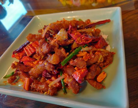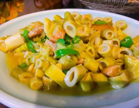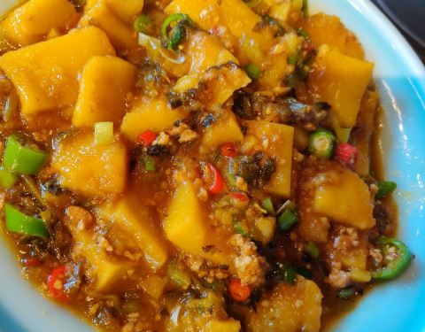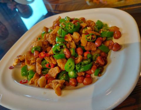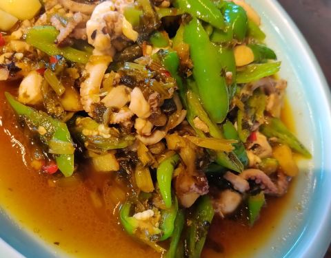 - 地三鲜不错,颜色搭配好看又好吃,特别是茄子糯糯的;我们点了些当地的自己种的绿色蔬菜和美食