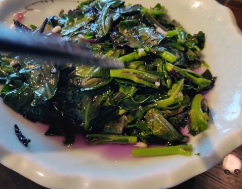 地三鲜不错,颜色搭配好看又好吃,特别是茄子糯糯的;我们点了些当地的自己种的绿色蔬菜和美食