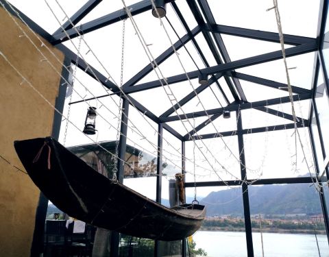 秋高气爽带着小朋友来富春江边逛逛,看见这家装修好看又有大露台的餐厅果断选择了它。大露台上可以看到富春江景,超级怡人。 一进门服务员就很热情在招呼开了,给我们推荐的几个特色菜味道都很好。 餐厅环境整洁打扫的很干净,就连厨房餐台都让人感觉明亮,一点不油腻。 德式烩牛排:有海鲜,有牛排,再配上一点蔬菜在铁盘上吱吱吱的,那叫一个香。 野生桂鱼汤:以前吃的都是鲫鱼烧汤,第一次吃桂鱼烧的,汤汁没有鲫鱼白,但是一定比桂鱼鲜,里面还加一点点虾,笋,枸杞。太好吃了。带孩子来这个汤必点,味道好,营养也好。 番茄丝瓜:番茄和丝瓜是他们自己种的有机菜。 总体感觉很满意,下次还会选择来这里。