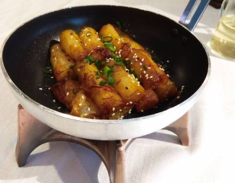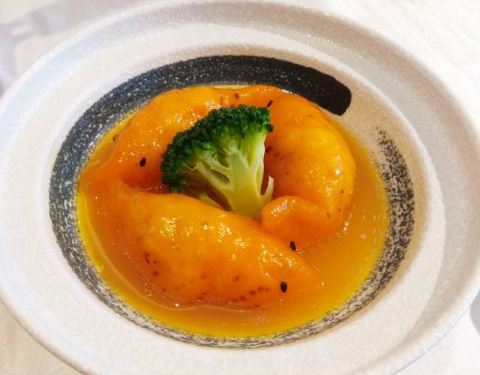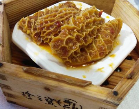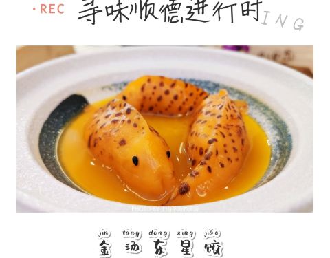 这家位于广东省佛山市顺德区容桂东堤路君润商业大厦君领广场4楼和5楼的“珍之宝御品”虽然是一家开业不久的新门店,但因为“珍之宝”是老字号,一楼门面的等候区都坐满了“嗷嗷待哺”的食客,人气超级旺!“珍之宝御品”内部超宽敞的用餐环境和无比精致的装修细节,都深深地折服了我。这里不仅有大厅位和小包厢,也有更私密的包房,可以满足不同人群的需求!最赞的绝对是无敌的大江景,视野超好的落地玻璃窗将的户外的明媚引入用餐区,吃货们的心情都会变得好好! 推荐菜品:网红迷你小白兔(16.8元/4只)自带仙气的嫦娥宠物玉兔下凡拉!不过不要被这萌萌哒卖相欺骗了哦,其实颜值超高的本尊是杏仁冻哦!口感Q弹滑嫩很好吃! 推荐菜品:冰镇咕噜肉(48元/份)酸酸甜甜很开胃的咕噜肉是一道传统的粤菜,珍之宝御品在这方面进行了改良和创新。首先每一块咕噜肉都是肉,没有骨头!吃起来啖啖肉的感觉,爽飞了!橙金色的咕噜肉和放置在晶莹剔透的冰块上很是好看,而且脆皮经过冰镇后更加清爽不油腻! 进店必点:金箔姜撞奶(28元/份)顺德的“双皮奶”也许更有知名度,但真的超级推荐有机会一定要尝尝“姜撞奶”,因为这是一款可以“见证奇迹”的点心!当牛奶遇见姜汁,奇妙的化学变化产生了,两款液体相遇几十秒竟然就变半固体了!香、辛、辣的浓浓姜汁在鲜牛奶的“宠溺”下变“温柔”了不少,一口口吃下去暖胃又暖心! 进店必点:泉水自磨豆腐花(23.8/份)豆腐花不是稀奇的玩意儿,好吃的豆腐花基本上泉水也是标配。我也算是“阅豆腐花”无数的,但珍之宝御品的出品却是让我惊喜不已!首先,特调的黑糖浓汁甜得很纯粹也很滋养!必须说明在南方吃豆腐花肯定是甜的,这点不接受反驳!媲美果冻的质感既嫩又滑且不碎,一改我对豆腐花固有思维了! 推荐菜品:至尊黑松露小笼包(28元/5只)小笼包不算是稀奇的玩意儿,而且严格来说小笼包也不能算顺德的传统点心,但能被冠以“至尊”肯定有特别之处!5只黑得发亮的小笼包是有点挑战了我对小笼包的传统审美……营养成分极高的黑松露不仅让传统的小笼包“咖位”升了不少,最重要的是让皮薄多汁的小笼包的滋味变得更加丰富。