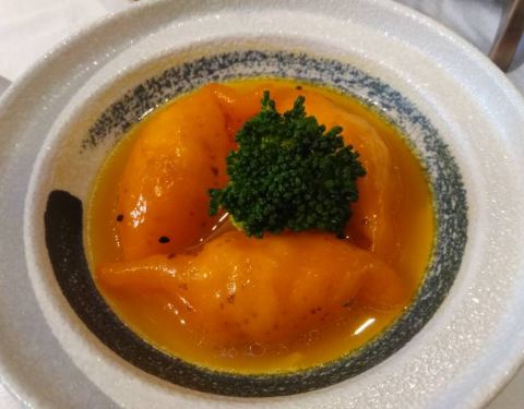 打卡第三间珍之宝[偷笑]这间比较特别:“御品”排队不少人,人气真的旺真的一线江景,望过对岸就是大良了|小鱼茶杯^茶杯很特别,宛如鲤鱼水中游|黑松露小笼包^皮薄不破,这技术比上海很多店都好[强]咬开小口吸汤,配上醋,完美|和味金钱肚^|豉汁蒸凤爪^金钱肚、凤爪是饮茶必点[阴险]|金瓜野米瑶柱粥^有意思,金瓜味道香浓,还能挖里的肉一起吃|金汤东星饺^活灵活现的饺子,不舍得下筷子[坏笑]真香警告!|红豆薄撑^珍之宝的薄撑出品真心不错,够香脆,趁热吃[耶]