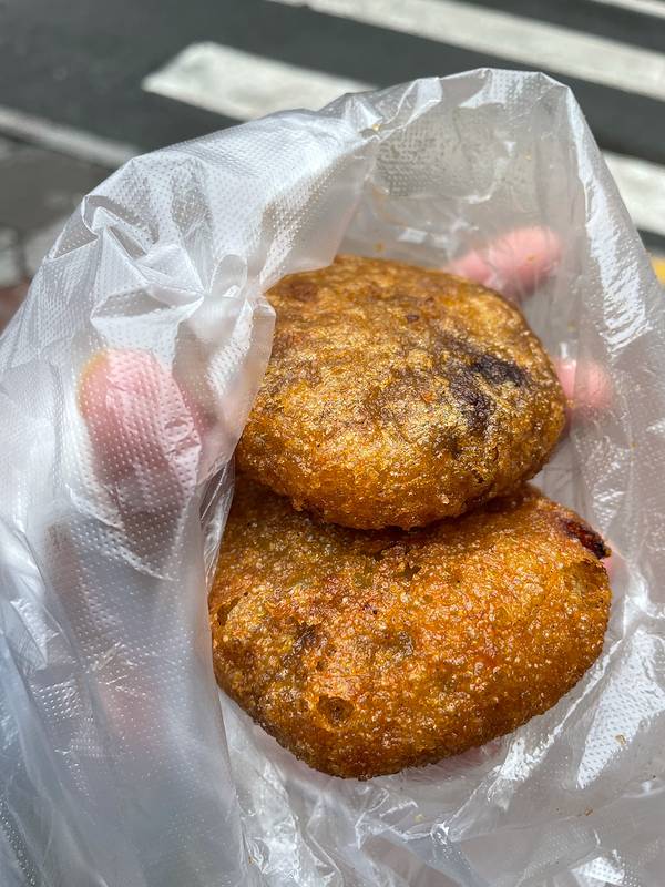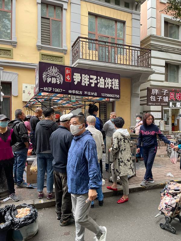 红专街早市,哈尔滨最出名的早市,距离中央大街很近。尹胖子油炸糕,只买了2个,1.50元一个