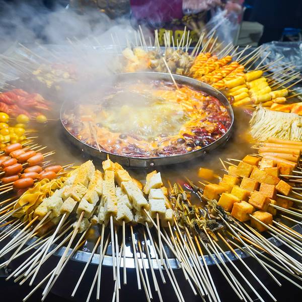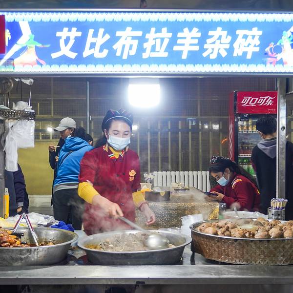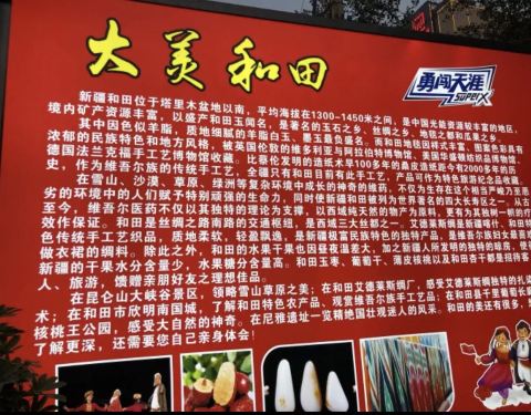 新疆的和田夜市,晚上8时,玉泉河公园南端的和田夜市人群熙熙攘攘。红柳羊肉串、酸奶粽子、玫瑰烤馕、炭火烤鸽子……各种勾人味蕾的特色小吃令人目不暇接。