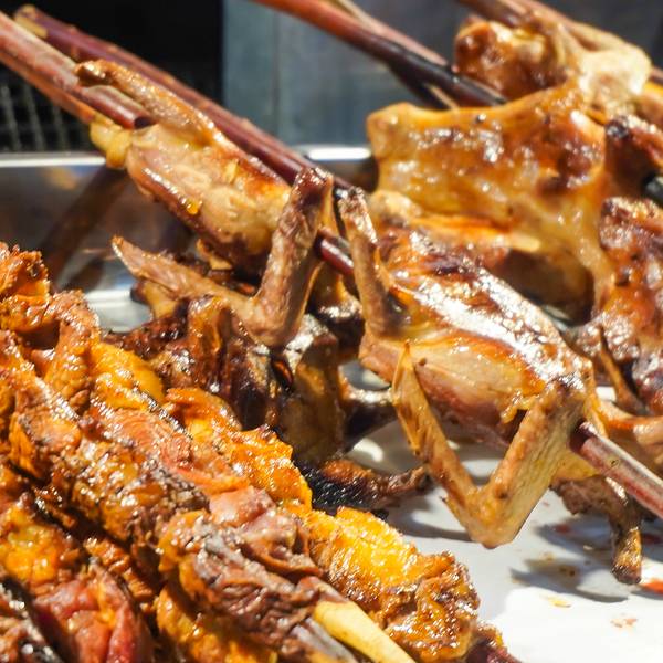 和田夜市占地20亩,有260余摊位,365天营业,夏天人流量最高达到5000人,冬天也有3000人。西瓜烤肉创意多,在和田夜市,还有一道和烤蛋一样,是近些年非常受推崇的佳肴——西瓜烤肉。西瓜烤鸽子夜市一绝。