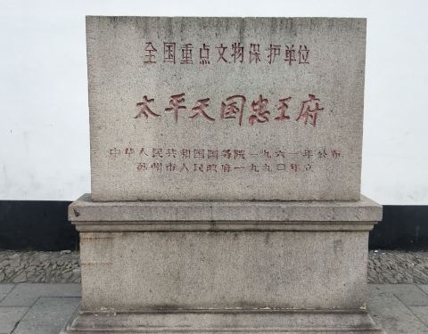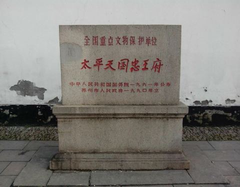 太平天国忠王府,位於苏州博物馆側,入口在苏博之內,现可说是苏博之一部份。忠王府,就是太平天国忠王李秀成之王府,其面績很大,是百多年前忠王辦事及居住的地方,现為苏博的特展区,遊苏博者可顺带一遊。