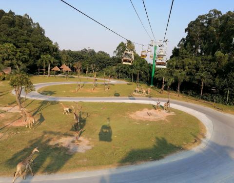 空中缆车也是长隆野生动物园里很有特色的一个项目啊,从天鹅湖这里就可以坐这个缆车在整个长隆野生动...