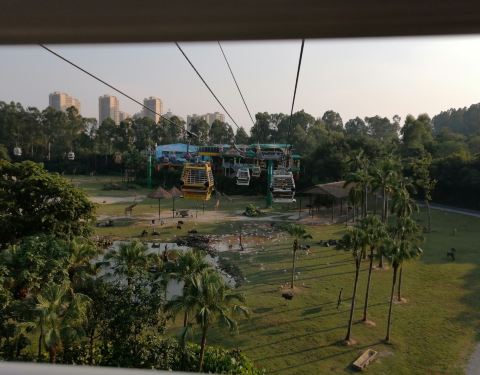 空中缆车也是长隆野生动物园里很有特色的一个项目啊,从天鹅湖这里就可以坐这个缆车在整个长隆野生动物园上空兜一圈小动物都在脚下了。