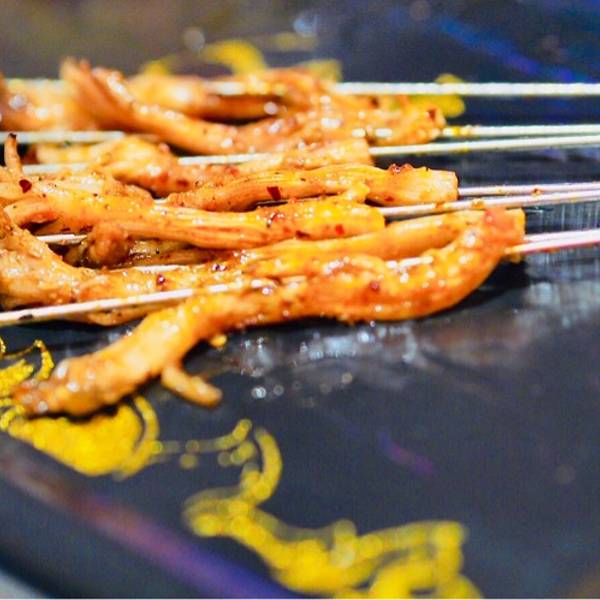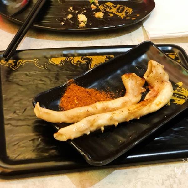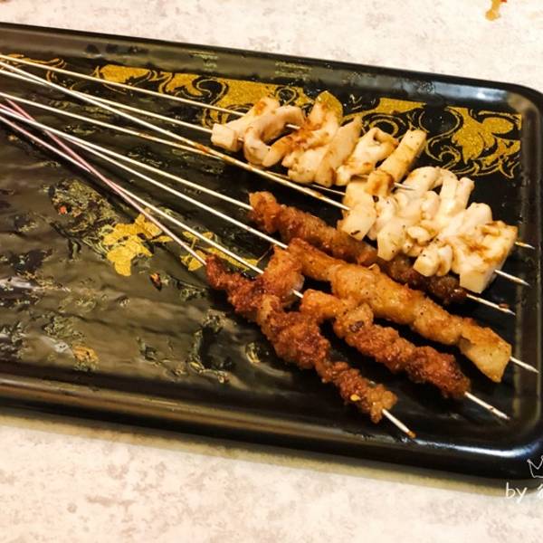 以前吃烤串儿,只知道牛羊肉和海鲜,原来还有这么多没见过的东西,这次我算是把没吃过的算吃了一遍,下面简单介绍几个吧: 猪心管,听着名字就知道是哪个部位了,粗粗的空心的像管子一般,当然吃的时候要剪成一小段,非常有嚼劲儿,但是能嚼得动。 爆浆猪眼睛,这个就有点重口啦,端上来的时候,我和它们对视了五分钟,实在瞪不下去了,只能塞进了嘴里,意想不到的好吃,一口下去爆浆的神仙感觉,汁水不是油腻的感觉,就是简单的水,然后开始嚼,也是有点嚼劲,没有腥味儿,嘴里只剩下孜然的味道,真的挺不错呢。 猪鼻筋,一只猪才两根猪鼻筋,样子有点像粉丝,软软糯糯的,都是第一次尝试的,没想到会有这么大的惊喜。