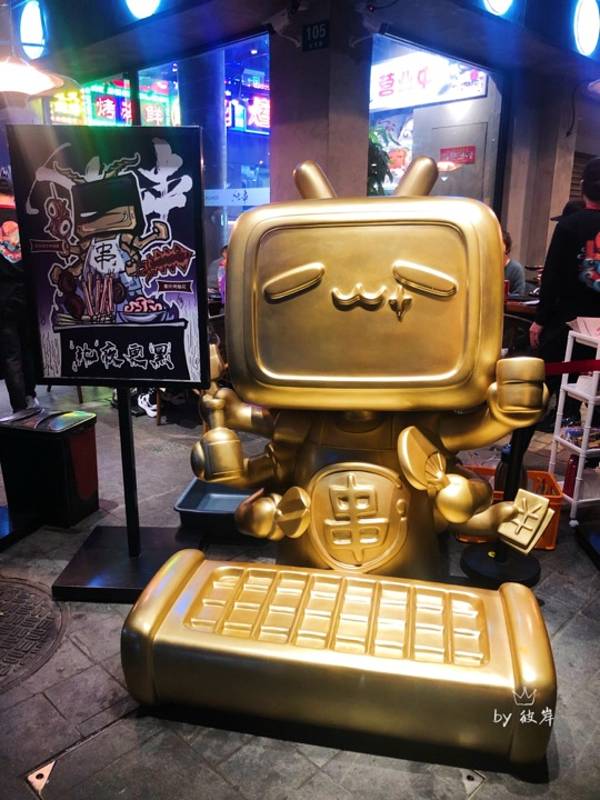 上次路过看到人叫一个人多,原来是B站人气作品《人生一串》的实体店,做好准备让附近小伙伴先来排队,稍有耐心!环境神还原各种场景,最有意思的是上阶梯头顶上晾着的衣服,二楼座无虚席,大家都在开心撸串喝着酒...