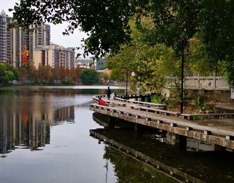 西湖荔浦风清在轻轨站出来的地方,有一个公园,可以划船有些游乐设施,相比于游玩,在夏天秋天更适合在湖边走走,吹着风,丝丝凉意还是很舒服的
