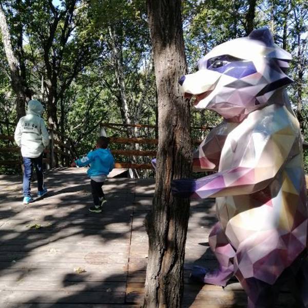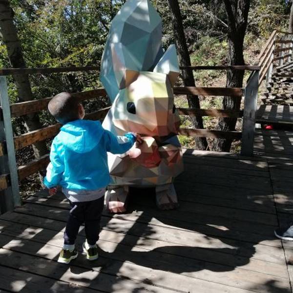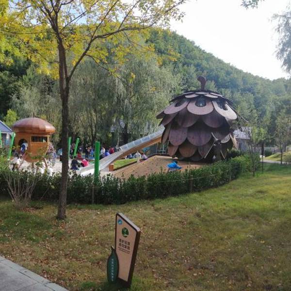 基本不写点评,但是这次必须写,因为感觉这里不仅环境优美、设施新、巧心思,最主要是服务真的很不错。环境:一览众山小的感觉,周围连绵的群山,虽说是石头山,但是还能满眼绿色,周边能清晰看到长城。设施:停车场大、公共卫生间干净无异味、售票处高大气派、景区大巴车干净、缆车也新。巧心思:售票处旁有类似景区介绍,像个小展览馆;通往售票大厅的路上,有很多人造动物,造型可爱,让走路不显单调;通往景区乘车区有滚梯,旁边楼梯也是图画成彩虹样子,很是漂亮;下车区和通往520的盘山路上是塑胶跑道,干净好走,步道和车道全区域分割;接近520处还有一片野餐区,满树挂着风铃🎐,风吹过时叮叮当当很有感觉;利用海拔分为520景观和1314景观,挺有创意,适合闺蜜和情侣打卡;还有适合孩子的小游乐场,当然都是滑梯、小攀爬楼梯等;周边还有人工景观和手作室、涂鸦墙,都非常有创意,其实在城里很正常,但是在这种自然景区可以如此,可见是费了心思的。服务:进入停车场保安测量体温,通过后手势引导进入,从语言到手势动作都是非常标准的,看多了“一指禅”,很少见到保安指路用的全手掌引导,感觉非常有修养,我两次来这里都是这样,可见并非偶然;售票人员耐心解答提问,哪里坐车、如何游览,看见我们有老人还给出游览意见,非常贴心。上下缆车工作人员也是手势指引标准,可见培训到位,人员素质也高。当然我这里说的和酒店服务还是有差别的,但是在类似这种景区,真的做的非常好了。最终促使我要写带点评,是因为我妈把缆车票丢了,我尝试联系了公园管理人员,他们要了身份证号(还好是老年票,凭证件优惠)还有微信付款截图,确定购买时间,经过查找,最终找到票的二维码,并且截图给我,最终顺利乘坐,真的由于我们的失误给工作人员带来额外工作,很抱歉也很感谢。全程工作人员态度积极,没有任何不耐烦情绪,非常值得称赞👍。提示:山挺高,缆车也要做半天,所以我觉得缆车票是值得的,特别是带着老人。下山我选择了步行,感觉沿途空气不错,但是飞虫太多,我全程都用衣服在驱赶,而且4.5公里下山路老人膝盖会受不了。建议带老人的往返缆车,然后可以去1314观景台和木栈道的地方走一走,爬一爬适当运动即可。