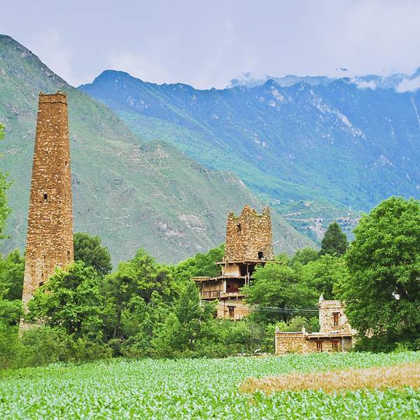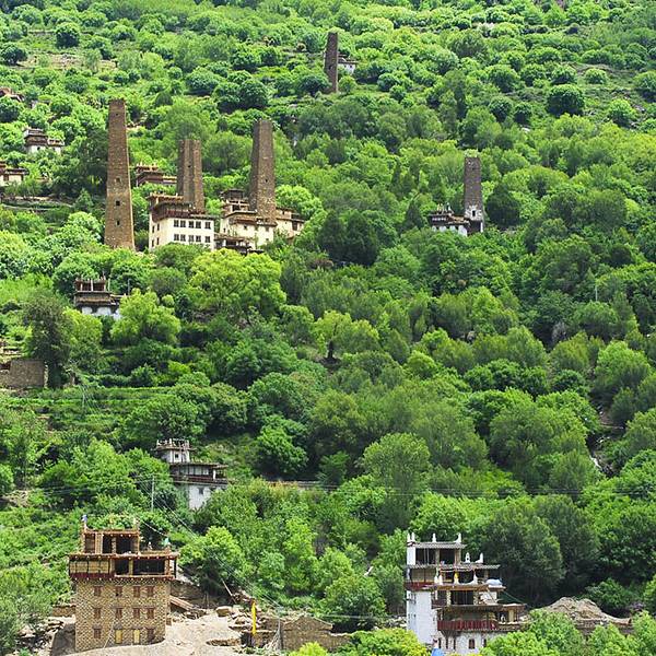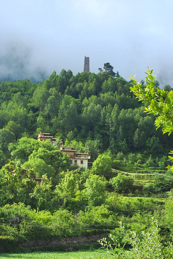 房屋建筑很有特色,远远的望去,这些建筑都在半山腰上,景致特别美、民风很淳朴,碉楼是这里最具特色的建筑