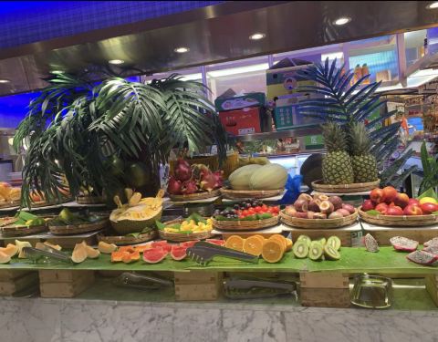 唯一没补的是热菜十三香小龙虾,但麻辣味一直有。烤肉,烤物,水果,甜点,饮品很丰富