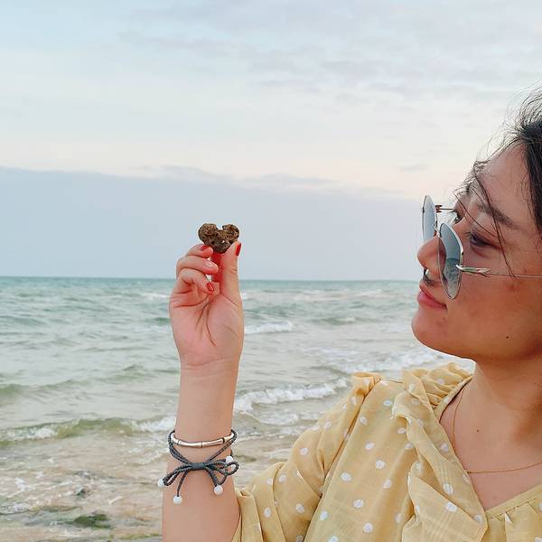 捡贝壳的小伙伴们无意中捡到贝壳沙滩的心,拍照玩疯了
