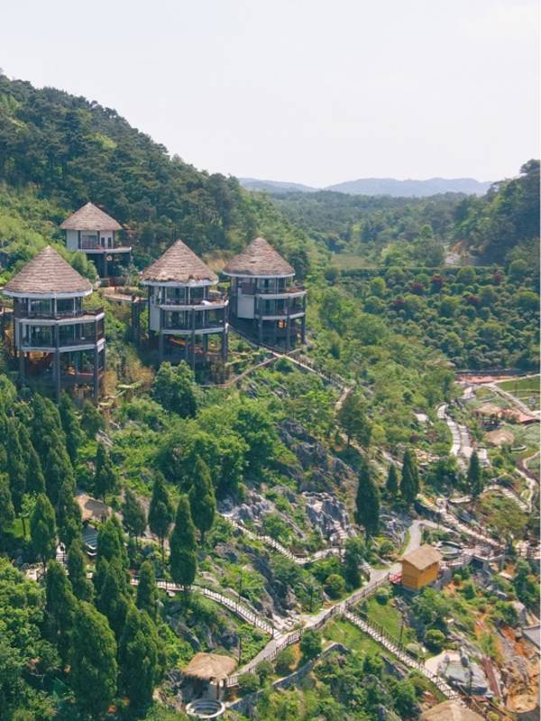 🔥度假区处于群山环绕之中,将桂林地区的典型丘陵地貌展现得淋漓精致,颇有一番世外桃源的情调,适合家庭或朋友结对前来放松,散心。