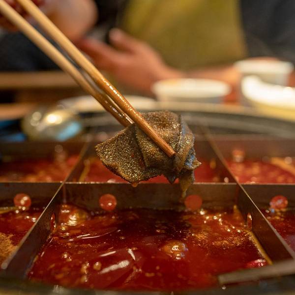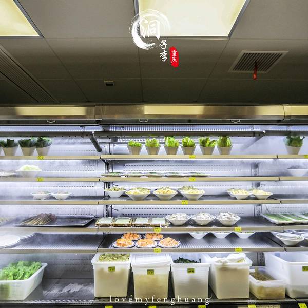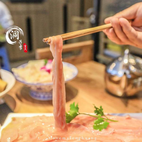 在重庆怎么能错过火锅,但也就是这一顿火锅让我爱上了整座城, 重庆必打卡之美食——【洞子李毛肚火锅】(解放碑店),到达重庆已是傍晚,来到重庆的第一餐,便是选择了这家来解决今天的晚餐,华灯初上,这里排满了人群,门口特意备了电视,茶水以及各种各样的小吃坚果,共前来等客的客人观赏饮用,天气虽凉,但依旧挡不住一颗吃货的心,因为特意在网上查到,这家店比较火,还需要排队,于是我们早早的就去了,正好今天不是周末,所以很顺利的拿到餐号。开放式的厨房也是众多人选择的这里原因之一,干净健康,不管是在外面还是里面都可以看到厨师们在精心制作着美味佳肴。 来重庆怎能做过9宫格,毫无疑问,必点九宫格底料,因是第一顿火锅,所以没敢选重庆的辣味,选了一个微辣,在寒冷的冬季来一场热腾腾的火锅之旅,简直嗨到不行。必点之菜品【毛肚】,味道太棒,毛肚由厨师在现场专门切至好后放入盘中,新鲜可口,还有专门的调料配置毛肚,最后在辣汤中翻滚20秒左右后出锅,已经汤汁全部入味,入口鲜而脆,在重庆,毛肚为必点菜之一,相当于北方吃火锅必点的羊肉,毛肚无味,但吃起来却是色香味俱全,超级爱吃毛肚,根本停不下来【洞子里主厨狮子头】店里的招牌菜,特别推荐,一开始只是以为跟我们平时吃的狮子头一样,但在锅里涮完后,用筷子夹开,原来在狮子头里面藏有咸蛋黄,下锅后的狮子头,浸上火锅的汤料汁,入口后香而不腻。【鲜鸭血】,浸入汤锅中煮熟后,捞出,入口后没有任何的腥味,鲜嫩滑口,女同学可以多吃一点。 【洞子里脆嫩腰花】也是这里的招牌菜之一,鲜嫩可口,喜欢吃腰花的一定不能错过,还有这里的一些卤味菜(卤肥肠,卤鸡脚,卤藕片)也是很有特色,值得尝试一番【鲜榨花生浆】超级推荐的一款饮料,浓浓的花生香,浸入到整个浆汁中,香滑可口,自己一人喝了整整一大瓶,如果怕辣可以点一杯,鲜榨的西瓜汁。