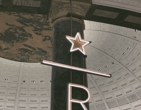 一楼中央大厅的穹顶辉煌大气,手工雕刻的古代钱币装饰环绕其间。 14根大理石柱,装饰着鎏金回型纹路,石柱下,12组汉白玉的交易柜台,触手依旧温润细腻。集合创意饮品,茶瓦纳专区,星巴克酒吧专区于一体的旗舰店, 首度引入天津门店,快来这个多元化的星巴克打卡吧!再也不用跑到北京深圳了 天津浙江兴业银行大楼,由中国第一批留洋建筑师沈理源先生设计,是一座享誉当地的文物建筑和代表性城市景观,自1921年建成之初便坐落于天津最繁华的商业区内。作为民国时期鼎盛一时的银行,在天津人的心目中拥有独特的历史地位。上世纪80年代,这里几经变迁成为永正裁缝店和外贸兴业商场,但却始终代表着昔日的辉煌岁月和彼时前沿的生活方式。1997年,这座建筑被列为天津市级文物保护单位。 带着对珍贵文物建筑的无限敬意,恒隆地产与星巴克不惜投入大量时间与精力,面对文物保护与创新改造的两难挑战,创造性地通过现代匠心与巧思,为的只是让历史与现代在此碰撞融合出与众不同的全新第三空间。历经与文物管理部门和专家无数次的反复推敲及一千多个日夜的悉心打造,如今,这座沉寂多年的历史建筑终于重焕新生。