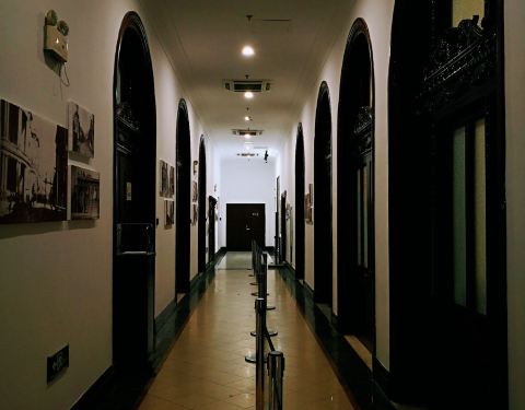 这个咖啡厅有点漂亮,大大的穹顶,依然保存的建筑是民国时期的风格,所以很多地方都有提示要好好保护