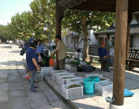 新修建的人造古镇,二边商铺几乎都是关门睡觉。慕名特意去的,结果是非常失望的。整个人造古镇只有原来的老桥头,有些当地人在叫卖当地的水果猕猴桃。猕猴桃在上虞种植很多,到了现在国庆节丰收的时候,路边角落都是猕猴桃在出售。