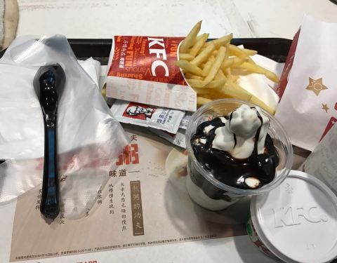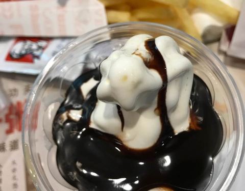 不错,这家圣代给的巧克力酱很多。喜欢!薯条量也很大。鸡腿看着过瘾吧,哈哈!