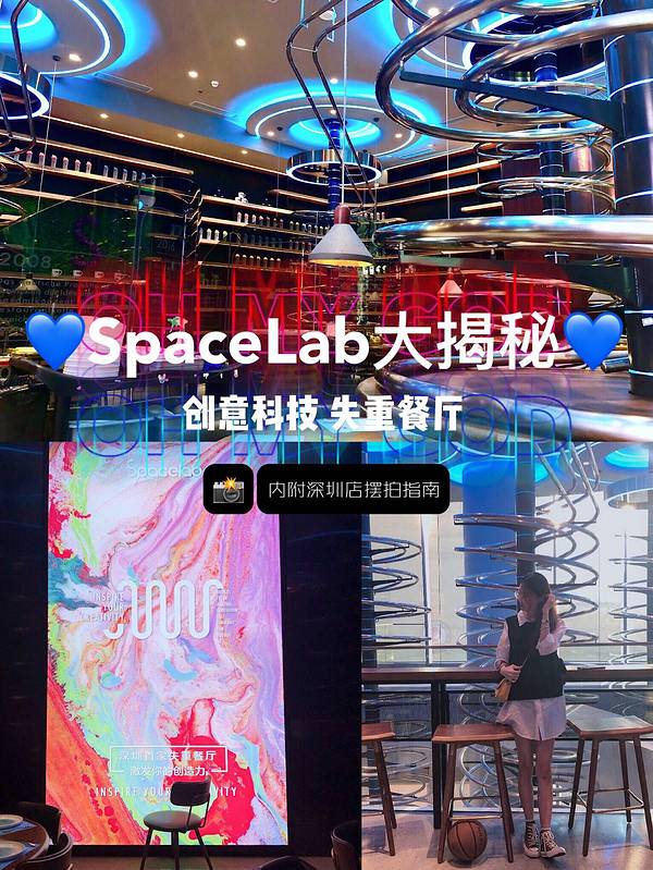 📍 宝安壹方城 | 失重餐厅L1层17A(露天美食区) 🌟 魔幻太空环境 · 智能科技点餐· 高空轨道送餐 💠 营业时间| 11:30am-22:00pm 🚇 1号线*5号线*宝安中心站F出口壹方城 ———————————— 🔥红遍抖音的头号网红科幻餐厅落户深圳,再也不用羡慕北京、上海和重庆的小伙伴啦!🏙酷炫魔幻外太空的环境💠全新智能化的科技点餐送餐特别方式🍔配送着琳琅盲目的西餐美食,品尝之间仿佛置身于科幻大片,老少咸宜,别具新奇。 ———————————— 🏙魔幻太空 | 餐厅环境如巴斯光年和三眼仔的外太空即视感,以铁质和玻璃装饰为主,多条音速轨道横空穿越餐厅两层楼,非常炫酷,透过的蓝白相间的灯光镭射出满满的科技感,晚上灯光全开就像一片蓝海,酷炸了,周末餐厅中超级多酷爱科技的小孩纸哦。 🌀酷炫点餐送餐 | 引进超全的智能科技化,服务员小哥哥会细心讲解所有机器的使用,所有的细节都非常有未来世界的FEEL: 🔹点餐机器是配置了摇杆的IPAD,点餐完成后扫码支付即可 🔹3分钟内食物会从所属餐桌的轨道滑下,承载着食物的小飞船颜色与自己餐桌桌垫颜色相同,即代表是自己点的食物 🔹音速轨道下有大圆转盘,餐巾纸、酱料、纸杯等用具可转动拿取使用 🔹蛋糕或牛扒等易烂易烫的食物会有专门服务员进行配送 💠简餐美食 | 和闺蜜路过感觉很炫酷就吃了下午茶 🔹🍺德国小麦啤酒在晚上8点后外带是1元/杯哦,平日价为48元/杯 🔹🍵失重饮料满满的能量感,是我钟爱的口味,牛油果菠菜香蕉和牛奶搅拌而成,香喷喷的香蕉奶香,入口后淡淡的牛油果味,不会有菠菜的菜青味哦放心 🔹🥗烟熏三文鱼沙拉非常足量,酱料经过轨道失重落下已经搅拌均匀,内有新鲜的马苏里拉芝士 🔹🍔汉堡、意粉等主食味道也杠杠的哦 🧜🏻♀️摆拍指南 | 深圳壹方城店的SpaceLab两层楼都充斥着满满的科技感 🔹一楼用餐区:与铁质轨道、美食合照,记录好玩的瞬间 🔹一楼落地画布或S标志区:靠墙壁或LOGO一站,满屏幕的大长腿 🔹二楼靠窗吧台区:最右边的落地窗角落和站立于吧台区中间,是酷炫的场景 ————————————