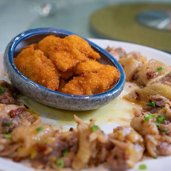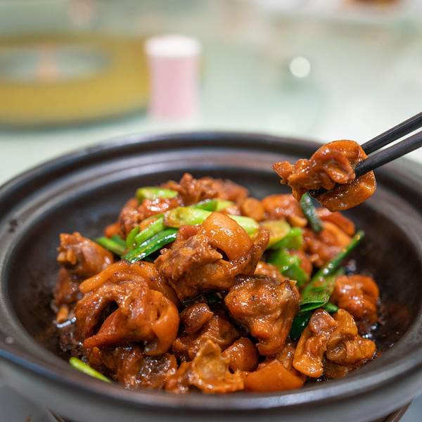 身为土生土长的广东人,吃了那么多年的粤菜,愣是没能把广东吃个遍。在广州六个煲农庄,邂逅我未曾品尝过的广府美食。六个煲农庄在当地很有名,口碑极佳,是许多人即使排一个小时队也要打卡的餐厅。一口甘香化州鸡是农庄的特色菜,化州鸡作为广州香油鸡的代表,口感香嫩,味道独特。而这道化州鸡一鸡两吃,中间是油炸过的,外脆里嫩,不油不腻,外圈是蒸出来的香油鸡,香气四溢,食欲大开,鸡骨全剔,吃起来也很方便。鸡架和苦瓜一起炖汤,做成了凉瓜黄豆鸡骨汤,是夏日消暑清热的佳品。成骨煲淋莲藕和一品养生煲也都是粤菜的代表作,既健康又美味,中意养生煲里五花八门的食材,非常适合热天吃。电白捞粉是茂名的特色主食,粉很Q,各种粉被广东人做得出神入化,同桌的外地朋友非常喜欢这道菜。秘制高原兔的兔肉紧实滑嫩,肉皮有嚼劲,口感丰富,兔兔不仅可爱,还那么好吃。卤水拼盘也一定要吃,鹅掌、鹅胗、五花腩,味道也都一流。荷芹淮山炒鲜瑶柱爽口清新、清蒸黄金鱼滋味鲜美,香煎黄花鱼满口生香,在六个煲农庄,吃得开心,吃得放心。地址:广州市南沙区英东大道东井村牌坊旁 营业时间: 11:00-22:00 人均消费:78元