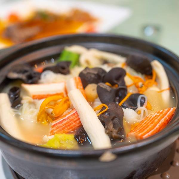 秘制高原兔:采用砂锅制作,很好地将香味锁在煲内,口感上Q弹有韧劲