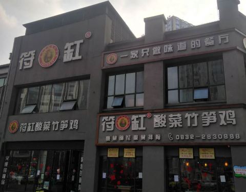 符缸酸菜竹笋鸡位于万达嘉华酒店斜对面,规模不小,味道很有特色,主要卖酸菜竹笋鸡,还卖酸菜竹笋蹄...