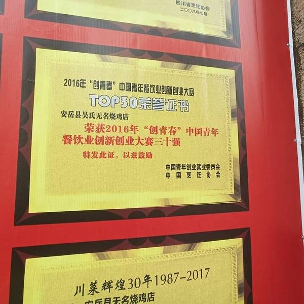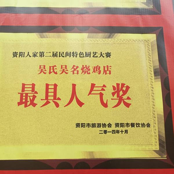 - “吴名烧鸡”是安岳传统江湖特色餐饮