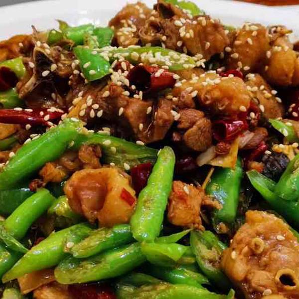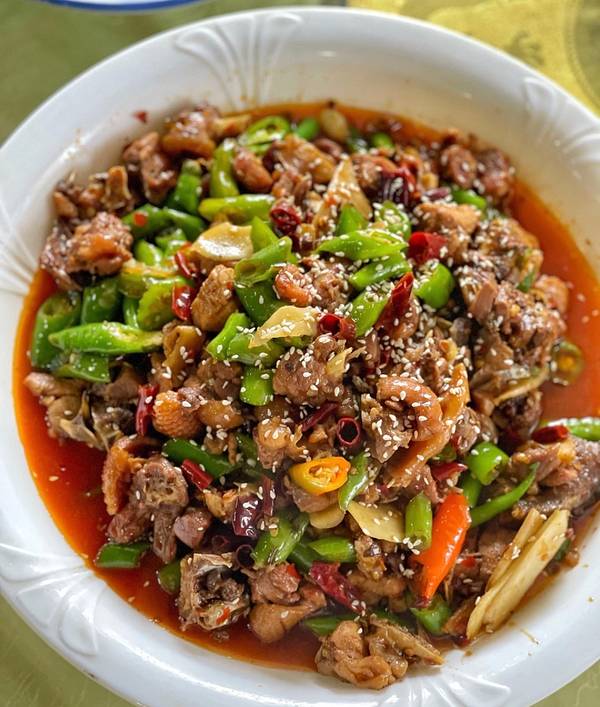 该菜品将农家土鸡辅以麻辣口味的小海椒、清香浓郁的大海椒和自制特色豆瓣酱 以及川人最爱吃的泡海椒、泡生姜通过炒、炖、烧等方式精心烹制味道鲜美,回味无穷,享有“川菜名菜”“资阳市旅游特色餐饮点”“安岳名...