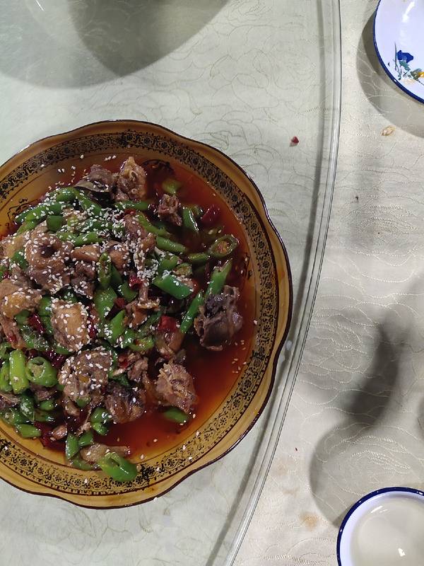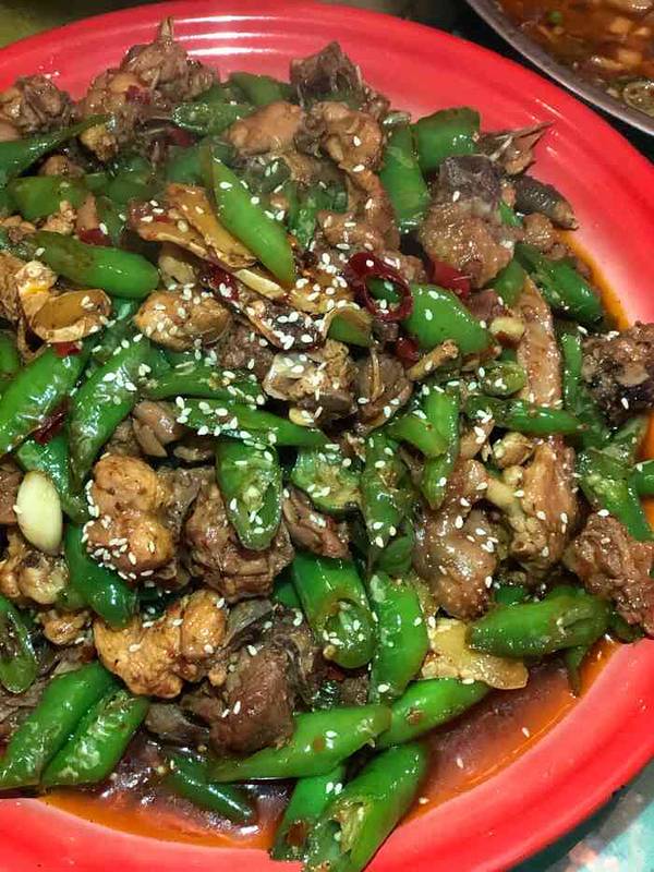 该菜品将农家土鸡辅以麻辣口味的小海椒、清香浓郁的大海椒和自制特色豆瓣酱