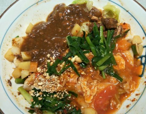 ...面,加了肉卤,西红柿鸡蛋卤,蔬菜丁,香香的辣椒油与芝麻,比普通的油泼面口感更丰富,活力马上充满