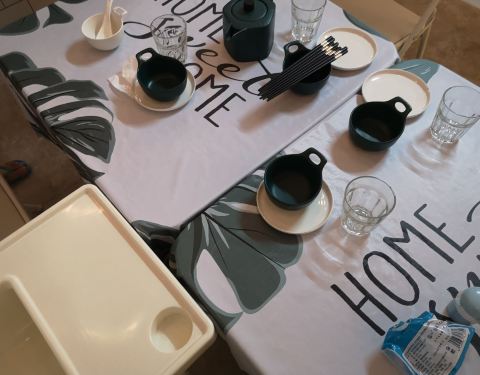地方还是挺大的,也就是民居分为几个小区域,有一些是户外的地方,可以找一个比较适合几个人坐的地方就可以了,我们就在一个小包间里面,可以容纳六个人。