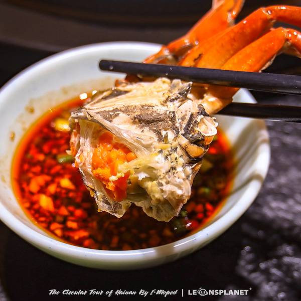 傍晚抵达万宁,最先打卡的是和乐蟹——「 海南四大名菜」之三。说实话,几年前的秋天就在海口吃过一回,从此再也无法忘怀那股鲜美,这次来的目的很明确,重拾旧时光的味道。 不过,这十冬腊月的(尽管海南冬天也很温暖),不知道是否过了食蟹的季节,只能抱着试试看的心理直接 上海 鲜酒楼打听。结果没想到餐厅大堂就摆着和乐蟹的水缸,束手就擒的螃蟹们在水里吐着泡泡……简直喜出望外,不过转念一想,难道这种蟹成熟是不分季节的?Whatever,反正不重要了,又可以吃上心心念念的和乐蟹就对了。 餐厅服务员喊我去水缸里挑蟹,我隔着玻璃找了一只体格壮硕的,捞起来一看,块头比手掌还大,上秤一称足有九两多重……是的,你没看错,这就是和乐蟹,除开体型大的特点外,它壳里的脂膏几乎覆于整个后盖;而且相比普通河蟹内里的软烂,它的蟹黄更加坚挺,肉质也更加厚实。挑好以后拿到厨房加工,大约20多分钟,蒸熟的和乐蟹就端上桌来。 通体橘红的蟹壳,散发着诱人的油光,掀开它的盖头,随即飘出海蟹特有的鲜香,壳下膏满黄肥的大块肉团,看着像腌好起沙的红心咸鸭蛋,色香味三个指标同时拉满,让人不由得食指大动。更绝的是,和乐蟹的钳子肉有小鸡腿那么大,而且口感软嫩清甜,蘸佐料都显得多余,原味就好吃到爆。 所以清蒸的方式是对和乐蟹这种海中珍味的最大尊重,从笼屉里拿出来还冒着热气的大蟹直接掰开吃就完了,口口都是肉,像吃蛋黄月饼一样,吃完一个基本就六七成饱了。不过话说回来,海鲜大餐最好是多叫几个人一起吃,一来是可以多吃几样不同的品类,二来是人均价位可以控制一下,不然一套虾兵蟹将整下来,后面的行程就要吃土咯。