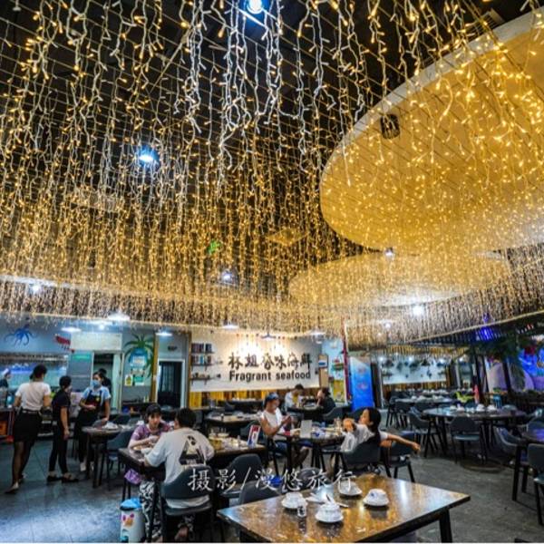 亚龙湾 的行程最闲适了,因为住的距离一号小镇奥特莱斯不行也就10多分钟的路程,没事的时候逛逛街是个不错的选择。 奥特莱斯是一个集美食、休闲、娱乐、购物为一体的风情小镇,奥莱品牌购物楼层每一层都是大牌云...亚龙湾 的行程最闲适了,因为住的距离一号小镇奥特莱斯不行也就10多分钟的路程,没事的时候逛逛街是个不错的选择。 奥特莱斯是一个集美食、休闲、娱乐、购物为一体的风情小镇,奥莱品牌购物楼层每一层都是大牌云集。里面的商店都是独立的,门口有明显的楼层商品指示牌。逛完街可以就近去下沉一层的海鲜广场吃一度丰盛的大餐。 朋友强烈推荐的林姐香味海鲜,就在奥特莱斯小镇内的海鲜广场,上次来 三亚 在林姐香味海鲜第一市场店吃的海鲜,味道价格都还不错,毕竟是20多年的老字号。 亚龙湾 店距离 亚龙湾 海滩、 亚龙湾 热带森林公园等景点都很近,打车也很方便,也有公交车直接打到奥特莱斯一号小镇的门口。 林姐店里的装修风格是我喜欢的,有点文艺风,墙壁上面的小物件小装饰格外精致,衬托的用餐环境也比较舒适。 清蒸石斑鱼,味道清淡鲜香,靠自身的鲜味和豉油相结合,在热油的刺激下香气四溢。 林姐辣炒蟹是店里的招牌,每次来吃都会点上一份,鲜辣的酱汁包裹住蟹肉,加上葱段姜丝的点缀,香辣适口,格外开胃。 海蛏子比较适合葱姜辣炒,容易入味,炒出花蛤色泽金黄,鲜咸适口。 大扇贝还是蒜蓉粉丝的做法最地道,新鲜的扇贝肉混合蒜蓉的香气,一个人吃7、8个没问题。 富贵虾在北方叫做皮皮虾,店员推荐了椒盐的做法,味道咸香风味独特。皮皮虾的虾壳比较难剥,店员空暇的话还会帮忙剥虾壳。 最后主食来一个菠萝饭,素菜还是要的, 海南 当地的四角豆很不错,蒜蓉爆炒味道爽催可口。