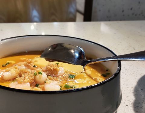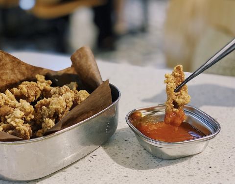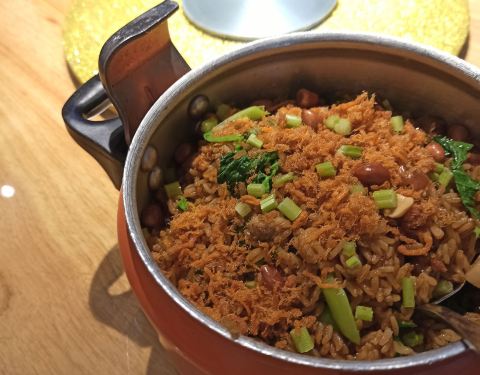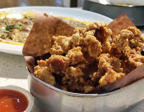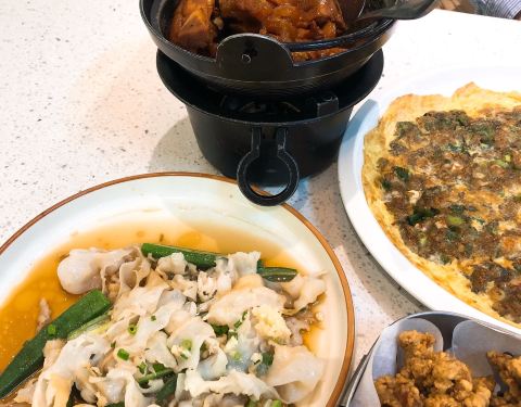 位置 南益广场五楼 和朋友聊天时,好几人夸这家店好吃,排队也要吃的那种,这次特意过来试试。 他家黄金鱼翅糕让我印象很深刻,口味不输广州吃到的茶楼点心,糕蒸得一根根脉络分明,和鱼翅一样,很Q弹,也不太甜腻。 鼓香蒸鳗鱼我很喜欢这道,感觉特别下饭,肉质鲜嫩,酱香入味,口味很传统,像闽南老派上桌菜的味道。 海蛎煎配泰式甜辣酱,放在烙锅上桌,蛮有意思的,很鲜甜,牡蛎煎得很嫩。比较新派的混搭。 粉丝半边虾我更喜欢粉丝。感觉虾汁都融化在粉丝里,特别鲜美入味。 芥菜饭做得挺好的,水准蛮高的,但觉得可以加点虾米或干贝吊个鲜味会更棒! 点的菜基本没有踩雷,感觉菜品的整体水准比较稳定,闽南口味,基本空盘,吃得身心愉悦,非常值得再来!重要的是这家菜的单价也不太贵,两三人也挺好点菜的。