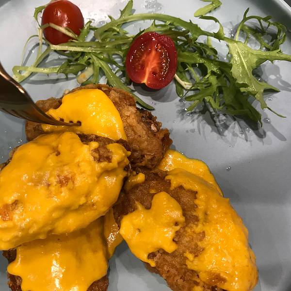 这家餐厅在避暑山庄景区附近,走路10分钟左右。餐厅里面的装修设计,比较年轻化,很有特色。可能因为是西餐,加上餐饮环境花了功夫,菜品相对于火锅店并不算便宜,人均差不多150元,一开始点菜,并不抱太大希望,但是上菜和品尝后,发现口感还是很不错的,比如鸡翅上面洒上了蛋黄酱,牛排的口感也不错(但不是整块上,切好的),榴莲披萨里榴莲分量给的很足,每一小块上一定有榴莲。所以价格这块还是ok的。