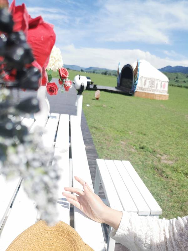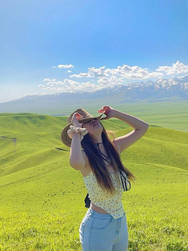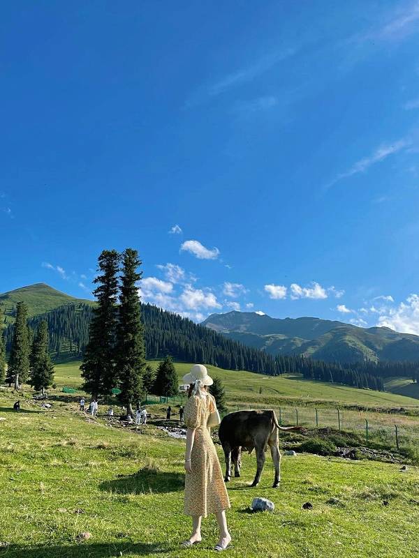🍃草原绿色景观居多,建议穿黄色、白色长裙更清新出片,当然度假氛围的编织帽不能少