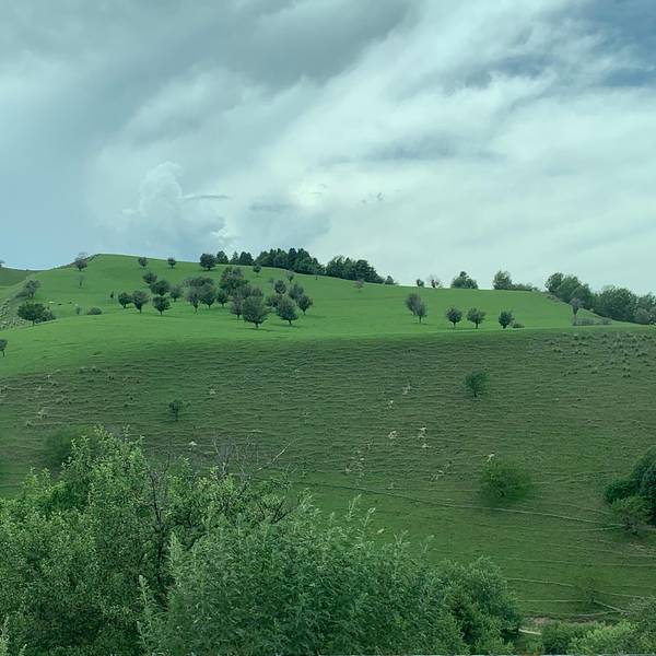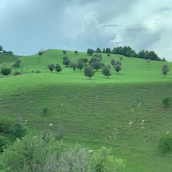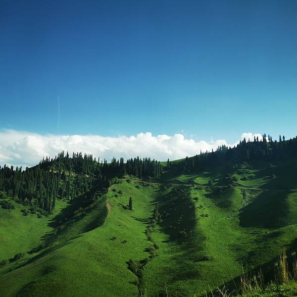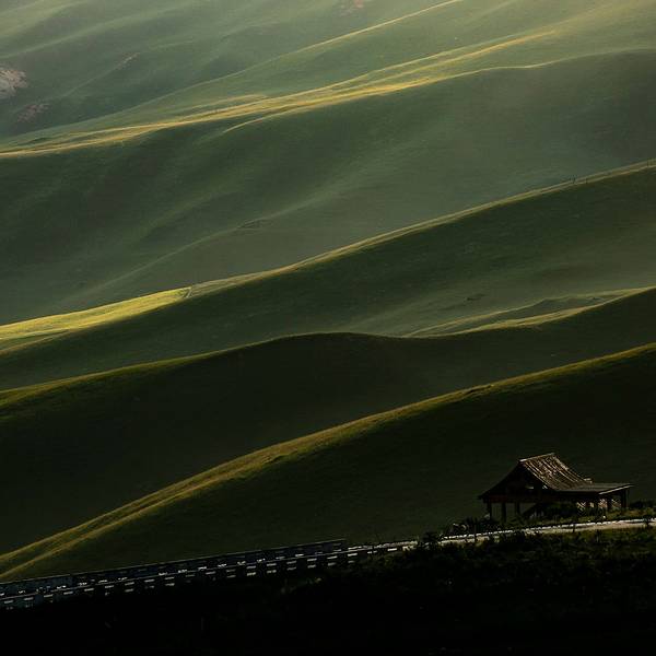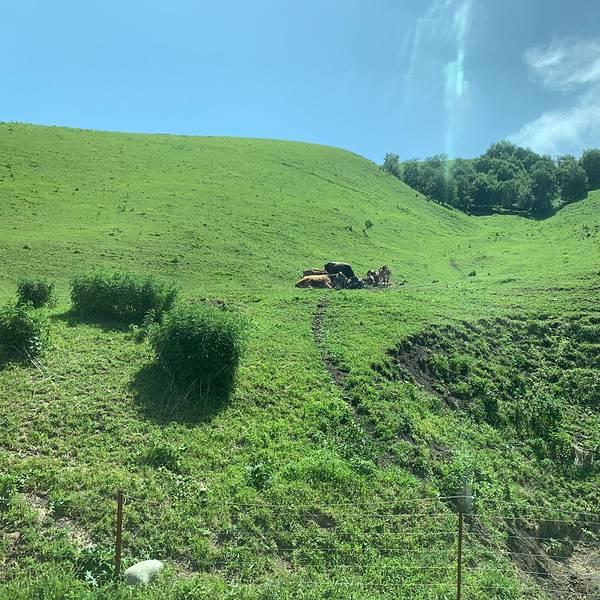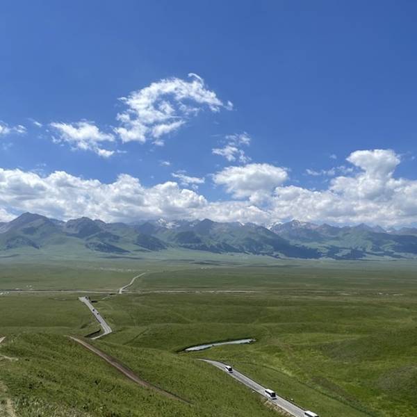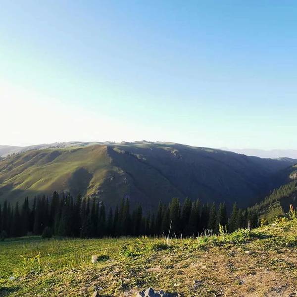 但是,当看到公路两边出现起伏绵延的草地时,我唰一下清醒了。这种梦幻的草原,一看就到那拉提了!